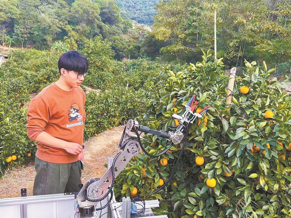 機(jī)械臂靈活擺動(dòng),精準(zhǔn)定位每一株作物——在福清,福建農(nóng)林大學(xué)的農(nóng)業(yè)機(jī)器人團(tuán)隊(duì)在調(diào)試新一代智能作業(yè)機(jī)器人,讓其采摘臍橙。“果園地形復(fù)雜,普通機(jī)器人容易打滑、定位不準(zhǔn)。”福建農(nóng)林大學(xué)機(jī)電工程學(xué)院、農(nóng)林人工智能研究院教授孔祥增介紹,這款機(jī)器人采用模塊化設(shè)計(jì),搭載自主導(dǎo)航系統(tǒng),能在泥濘、陡坡等惡劣環(huán)境中穩(wěn)定作業(yè)。