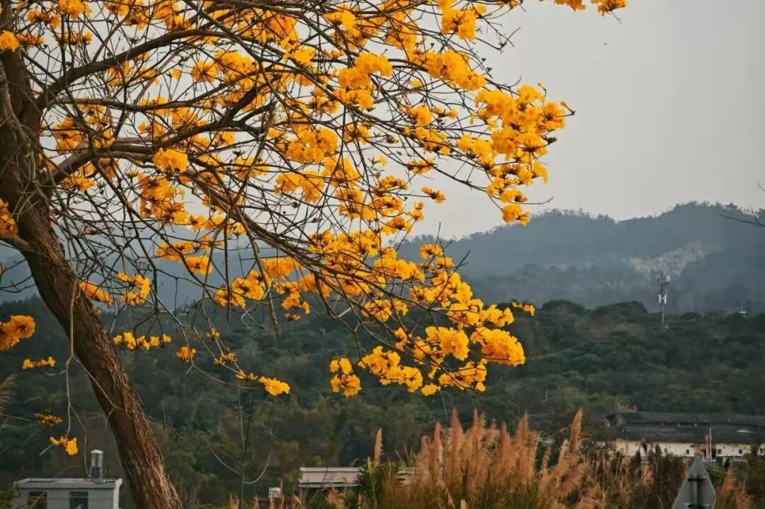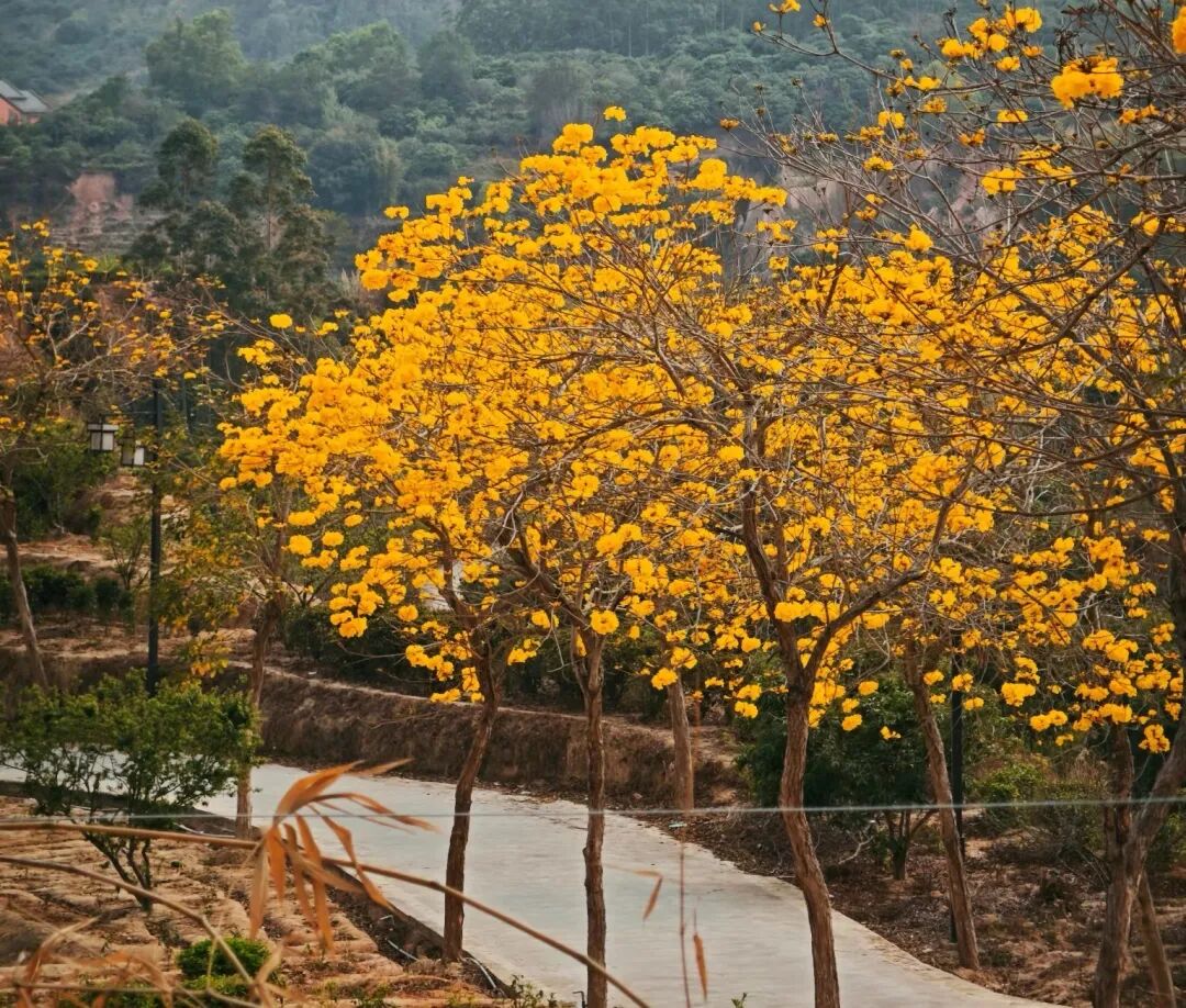 如果說春天有最明媚的顏色,那一定是黃花風(fēng)鈴木的模樣。在霞葛鎮(zhèn)司下村,這條藏在客家山鄉(xiāng)里的“金色花道”,早已在三月迎來了全盛花期。