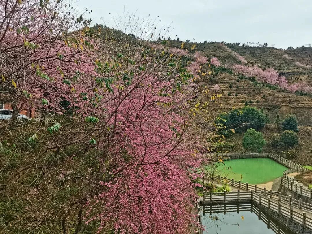 “深山未必得春遲,處處山櫻花壓枝”,誰說看櫻花一定要去遠(yuǎn)方?在秀篆鎮(zhèn)隔背村的裕健龍生態(tài)園,這片藏在深山里的櫻花園,早已用漫山的緋紅,解鎖了詔安春日最仙氣的模樣。