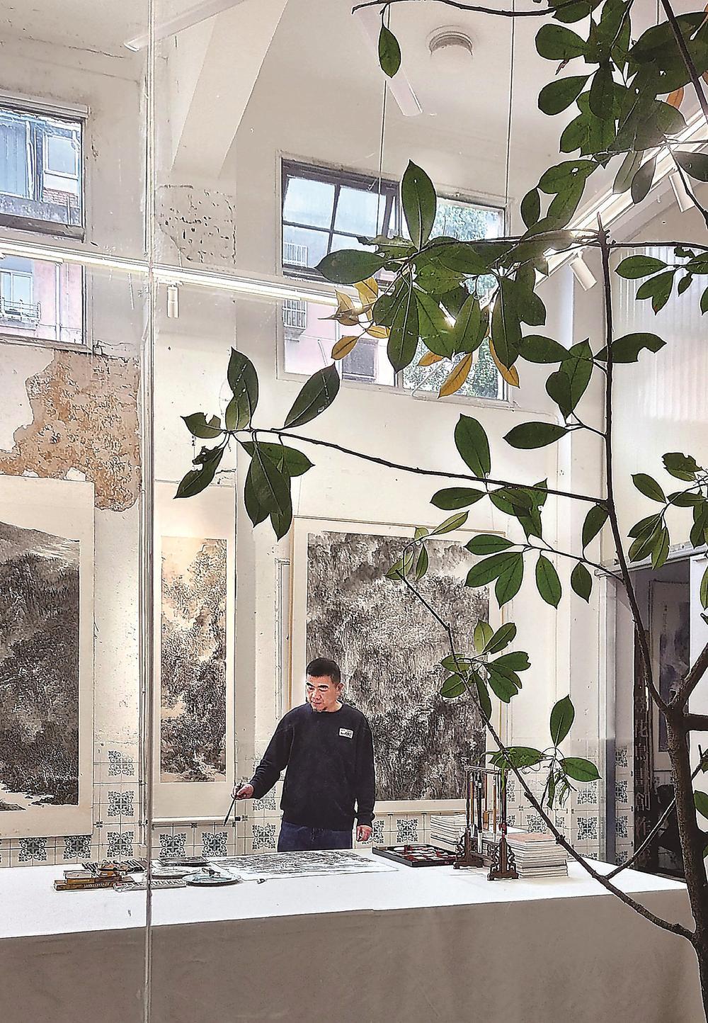 李國雄在由舊廠房“微”改造的工作室創(chuàng)作。