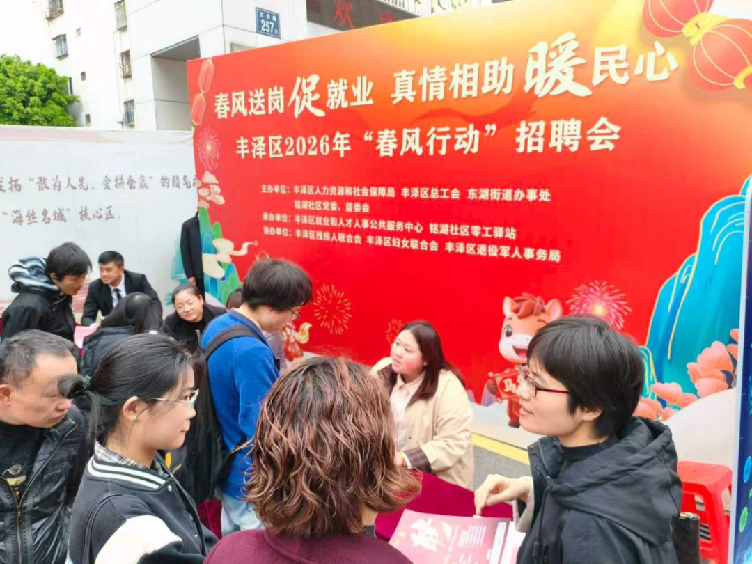 在東湖街道銘湖社區(qū)家門口就業(yè)服務(wù)站舉辦豐澤區(qū)2026年“春風(fēng)行動(dòng)”招聘會(huì)