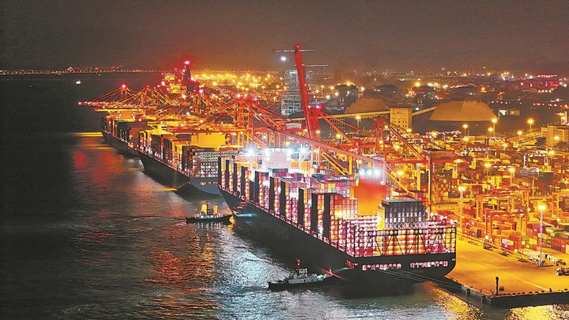 15日晚,20萬噸級超大型集裝箱船舶“新加坡快航”輪安全靠泊廈門海滄港區(qū)嵩嶼集裝箱碼頭。至此,“地中海漢堡”輪、“地中海菲比”輪、“新加坡快航”輪3艘20萬噸級超大型集裝箱船舶同時靠泊廈門港嵩嶼作業(yè)區(qū)。這是廈門港首次實(shí)現(xiàn)3艘20萬噸級超大型集裝箱船同時靠泊作業(yè)。